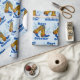 Line Dance Geschenkpapier mit einem Cowboy Stiefel und Musik Symbole hinter ihnen und den Text "Boot Scootin". Dieses Design ist in verschiedenen Farben erhältlich.