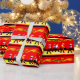 Geschenkpapier für Line-Tänzer mit einer Gruppe von Country-Tänzern mit Musiksymbolen darüber. Es gibt eine andere Version dieses Designs, in der die Worte LINE DANCING enthalten sind. Dieses ist auch in einem blauen, schwarzen und rosa Farbschema erhältlich.