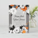 Lineart Blütenhochzeit, schwarz, weiß, orange Einladung