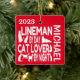 Dieses einzigartige Ornament mit dem Zitat "Lineman by Day Cat Lover by Night" ist perfekt für jeden Lineman, der Katzen Lieben.