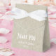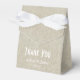 Ein cremefarbener Leinenhintergrund macht eine schöne Gastgeschenk Hochzeit mit weißem Bogen und die Worte Dankeschön in Weiß, bereit, mit Ihren eigenen Namen und Datum anzupassen.