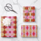 Dekoratives rosa und gelbes gemustertes Regal, Schubladenverkleidung oder Geschenkverpackung mit drei verschiedenen Mustern in den gleichen Farbtönen.