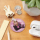 Schönes sibirisches Kätzchen in Geschenktasche mit feminininer Dessous und lila Hintergrund, gemalt von der Künstlerin Maryline Cazenave.