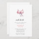 Planen Sie ein fabelhaftes Dessous Party Brautparty mit dieser eleganten und eleganten, modernen und einfachen Einladung mit einer Aquarell-Illustration eines rosa BH mit einem hübschen Farbband und feminin Spitze. Chic und einzigartig, wird es eine zukünftige Braut begleiten auf ihrer Reise von Frau zu Frau.