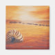 Die warmen, goldenen Farbtöne deuten darauf hin, dass die Sonne des Abends untergeht. Ohne jeden Single ist am Strand nur eine riesige Muschel links, als würde sie dem Gezeitenflüstern lauschen. Die Muschel wirft einen langen Schatten und weist auf den nächtlichen Ansatz und die Einsamkeit des Geistes hin. Eine Flutwelle schlug das Ufer und bricht die Stille und Stille des gesamten Bildes. Zentral im Bild, ein Sonnenstrahl, der durch den Horizont geht, was darauf hindeutet, dass er den Tag beenden wird. Die schwebenden Haarzwolken verleihen diesem Bild eine einsamere Atmosphäre.
