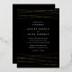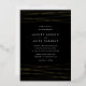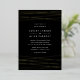 Unsere minimalistische Lineation Hochzeitseinladung in schicken Schwarz und Weiß ist sauber und modern und bietet einen oberen und unteren Rand von glänzenden Goldfolienlinien auf schwarzem Hintergrund. Persönlich mit Ihren Hochzeitsdetails in modernem weißem Schriftzeichen in einer eleganten Kombination aus Serif kursiv und sans serif caps.