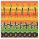 Strichmännchen "Linie Tanz" in den Reihen mit anderen Formen auf einem bunten Steigungshintergrund.