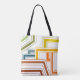 Diese Tasche hat einen Deko-Design von Linien in grün, gelb, braun, orange und blau.