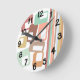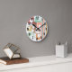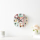 Diese Wanduhr hat ein modernes Design von Linien und Rechtecken in Retrotönen Rot, Gelb, Orange, Blau, Grün, Braun und Rosa.