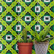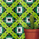 Diese Keramik-Kachel ist ein faszinierendes Kunstwerk mit einem lebhaften und geometrischen Design. Der Druck zeichnet sich durch symmetrische Muster und fette Farben aus, die ein kompliziertes und auffälliges Muster erzeugen. Die vorherrschenden Formen sind grün, mit kleinen schwarzen Punkten und Linien geschmückt, die dem Design eine gewisse Tiefe verleihen. Diese Formen bilden den Mittelpunkt des Designs und zeichnete das Auge mit seiner lebhaften Farbe und aufwändigen Details. Im Gegensatz dazu stehen dunkelgrüne Quadrate mit weißen Konturen. Sie sorgen für Ausgewogenheit der grünen Linde-Elemente, verankern das Muster und geben ihm ein Gefühl der Stabilität. Schwarze Linien kreuzen sich über die Kachel und schaffen zusätzliche geometrische Formen, wie Dreiecke und Diamanten. Diese Linien fügen dem Design Komplexität hinzu und machen es noch eindrucksvoller. Das Gesamtmuster ist symmetrisch und erzeugt einen Spiegeleffekt von der Mitte nach außen. Diese Symmetrie erhöht die visuelle Anziehungskraft der Kachel und macht sie zu einer bemerkenswerten Ergänzung zu jedem Raum.