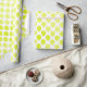 Dieses Verpackungspapier weist ein Muster von Kalkgrün-Ballons auf Weiß auf. Verwendung für Geschenkverpackung oder Entcoupage. Entworfen von dem weltbekannten Künstler Tim Coffey.