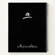 Behalt deine Noten stilvoll mit diesem links personalisierten Spiralheft. Das Notizbuch verfügt über ein einzigartiges modernes Monogramm und den Namen unten in den unteren Drittel ergänzende Skripte, alle in weiß auf einem schwarzen Hintergrund. Ein elegantes und stilvolles Design. Dieses Notizbuch eignet sich perfekt für den persönlichen Gebrauch oder als Geschenk für eine ganz besondere Person. Die Spirale befindet sich auf der rechten Seite, um den links Komfort zu gewährleisten.