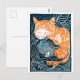 Linocut Black und Red Cat Cuddling in einem Bush Postkarte