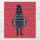 Es wurde mit einem linocut Hühnchen, schwarzen Punkten und Glitzer entworfen.