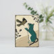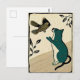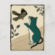 Linocut Katze Versuch einen Vogel zu fangen Postkarte