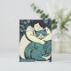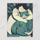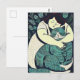 Linocut Voluptuous Frauen halten eine große Katze Postkarte