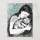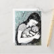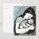 Linocut Young Woman Holding a Cat Postkarte