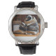 Vintage Männeruhr mit schwarzem Lederarmband