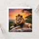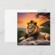 Schöner Löwe auf einem Felsen mit Sonnenuntergang im Dschungel