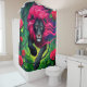 Dieser Duschvorhang hat einen künstlerischen Löwen darauf.