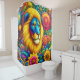 Dieser Duschvorhang hat ein Löwendesign darauf.