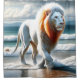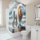 Dieser Duschvorhang hat einen Löwen darauf abgebildet.