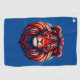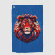 Dieses Golfhandtuch hat ein Löwendesign darauf.