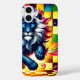 Dieser Telefonkoffer hat einen künstlerischen Löwen, der darauf abgebildet ist.
