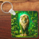 Dieser Schlüsselanhänger hat einen Löwen darauf abgebildet.
