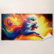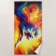 Dieses Strandtuch hat ein Löwendesign darauf.