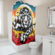 Dieser Duschvorhang hat einen künstlerischen Löwen darauf.