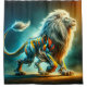 Dieser Duschvorhang hat ein Löwendesign darauf.