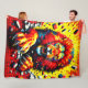 Diese Fleecedecke hat ein Löwendesign darauf.