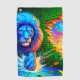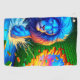 Dieses Golfhandtuch hat ein Löwendesign darauf.