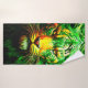 Dieses Badetuch hat einen künstlerischen Löwen darauf.