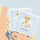 Entdecken Sie Ihren Tisch mit diesen zauberhaften, blühenden Puppen. Weiß gepunkteter hellblauer Hintergrund. Vorlagen für einen Namen und ein Datum, die sich perfekt für eine Babydusche oder einen Geburtstag eignen. Siehe dazu passendes Set in unserer Kollektion oben auf der Seite.