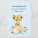 Feiern und spielen Sie dieses Rutschen mit dem Baby Duschspiel mit diesem bezaubernden, Baby Löwe-Kub mit Blumenstrauß unter dem Hintergrund und dem weichen Baby-blauen Hintergrund mit weichen weißen Punkten. Vorlagen für Sie.