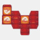 Niedliche Illustration mit einem Kind tanzt der Löwentanz für chinesisches Neujahr hinter einem goldenen Rahmen + goldenes "Happy New Year" in Chinesisch und Englisch + Ihre Nachricht und Ihren Familiennamen, um sich an kleine stilisierte chinesische Laternen Muster anpassen. Design auf Würfel Gefälligkeitsbox. Erhältlich in Gable-, Take-out- und Zeltfavoriten. Passende Grußkarte, Urlaubspostkarte und Party Vorräte.