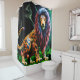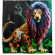 Dieser Duschvorhang hat ein Löwendesign darauf.