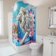 Dieser Duschvorhang hat ein Löwendesign darauf.