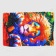 Dieses Golfhandtuch hat ein Löwendesign darauf.