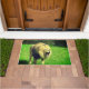 Diese Türmatte hat einen Löwen darauf abgebildet.