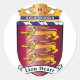 Heraldischer Schild mit dem Symbol von Richard dem Lionheart, 3 Löwen auf bordeauxrotem Hintergrund mit Krone.
