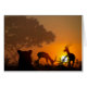 Eine Löwe aus dem Single wartet unter dem Gras, während Thomson Gazelles in der Nähe grasen. Der Sonnenuntergang strahlt hinter ihnen. Computer Art von preisgekrönter Künstlerin Kathie Miller.