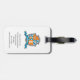 Personalisierter kurzer Name Prinz Stil königliche Ritter Schild Namen und Adresse Gepäckanhänger, Teil der Mantel der Armschild Wappen Namensbereich. Passen Sie Ihren Namen, Ihre Adresse und Ihre Adresse an. Kontaktinformationen finden Sie auf der Rückseite. Ideal, um Ihr Gepäck für Prinzessinnen zu kennzeichnen und zu schützen. Originelle Kunst mit einem Löwenkopf, einer Krone und einem Star-Wappen Wappen-Design in aquamarin, grau und orange von Sarah Trett für www.mylittleeden.com