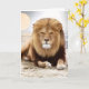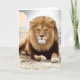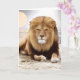 Schönes Löwenbild. Löwe liegt auf dem Sand am Ozean.