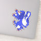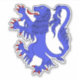 Dieses Design von Richard H. Fay zeigt einen heraldischen Löwenzahn, einen blauen Löwen, der im Profil auf seinen Hinterbeinen dargestellt ist und bereit ist, alle Angreifer abzuwehren.