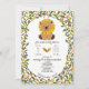 Eine Babydusche-Einladung, die eine Illustration eines von Herbstgrün umgebenen Babylions enthält. Personalisieren Sie den Text.