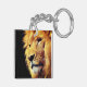 Dieser Schlüsselanhänger hat einen Löwen darauf abgebildet.
