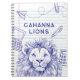 Schulbezogene Doodles und ein weit gehobenes Notizbuch ergänzen den Hintergrund dieses durchdachten Löwenmaskotts. Personalisieren Sie das Notebook Ihres Sohns oder Ihrer Tochter, indem Sie Ihren Namen, den Schulnamen oder einen anderen Text Ihrer Vorliebe anpassen. Los Lions! Design von Amanda Renee, CtrlZ Digital Designs 2024